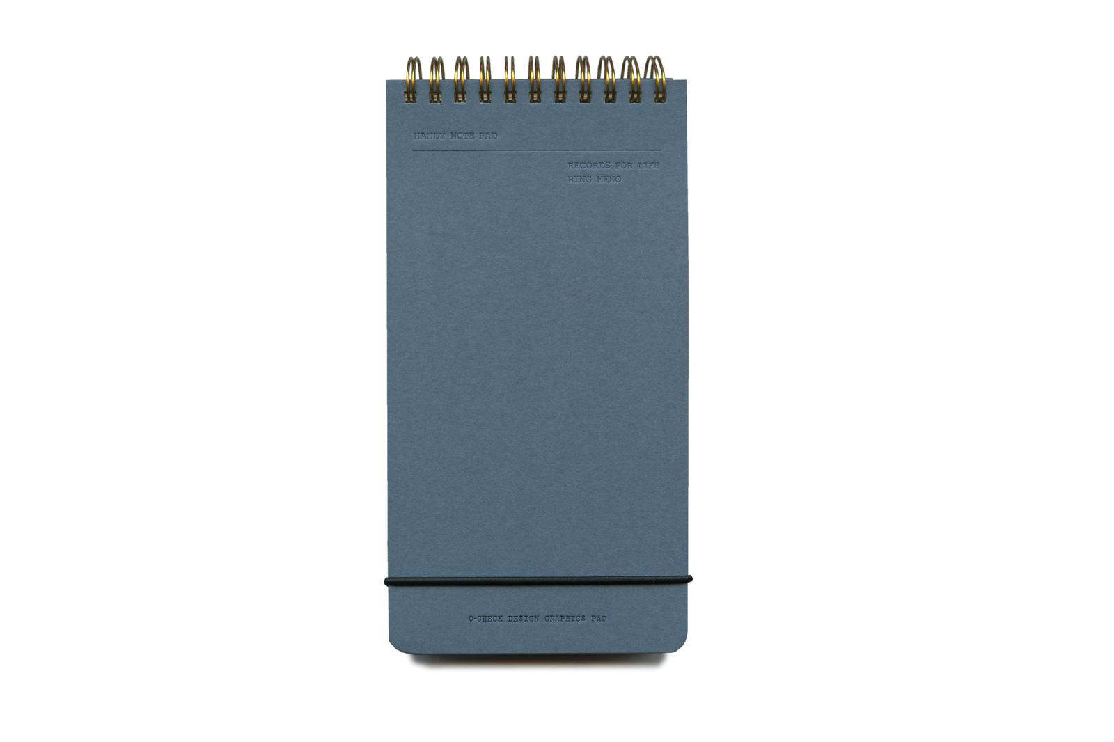 This reporter sized ring bound notepad from South Korean brand O-check Design is perfect for writing and sketching on the run. It contains 100 sheets of plain paper. The sturdy blue covers and the elastic closure insure a long life to your notebook.