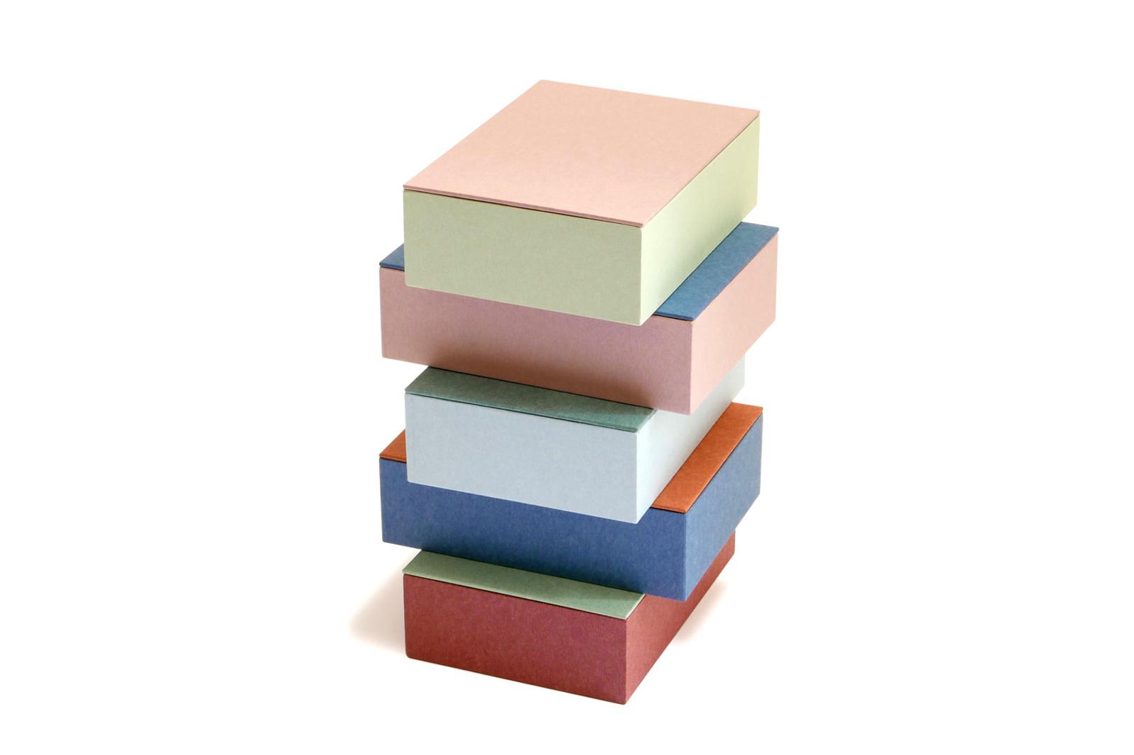 Diese Schachteln lassen wir in Berlin in einer Werkstatt für Menschen mit Behinderungen fertigen. Sie sind mit dem wundervollen japanischen Satogami Papier bezogen, das eine sehr schöne Haptik hat und ausgesprochen ausgewogene Farben.